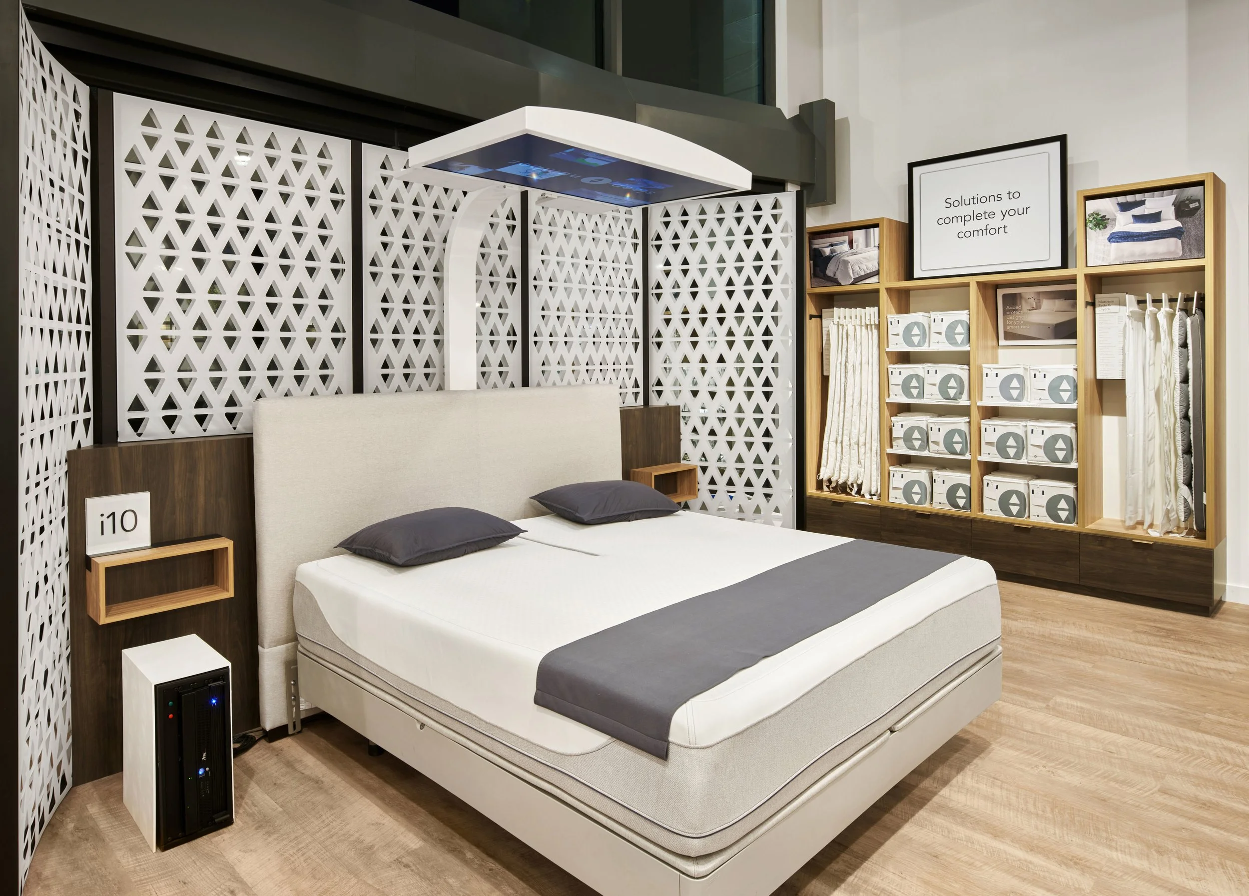 Concept store for Sleep Number opened in the Flatiron district of New York City. The large-scale print and digital signage was designed to attract customers from street level outside the store.