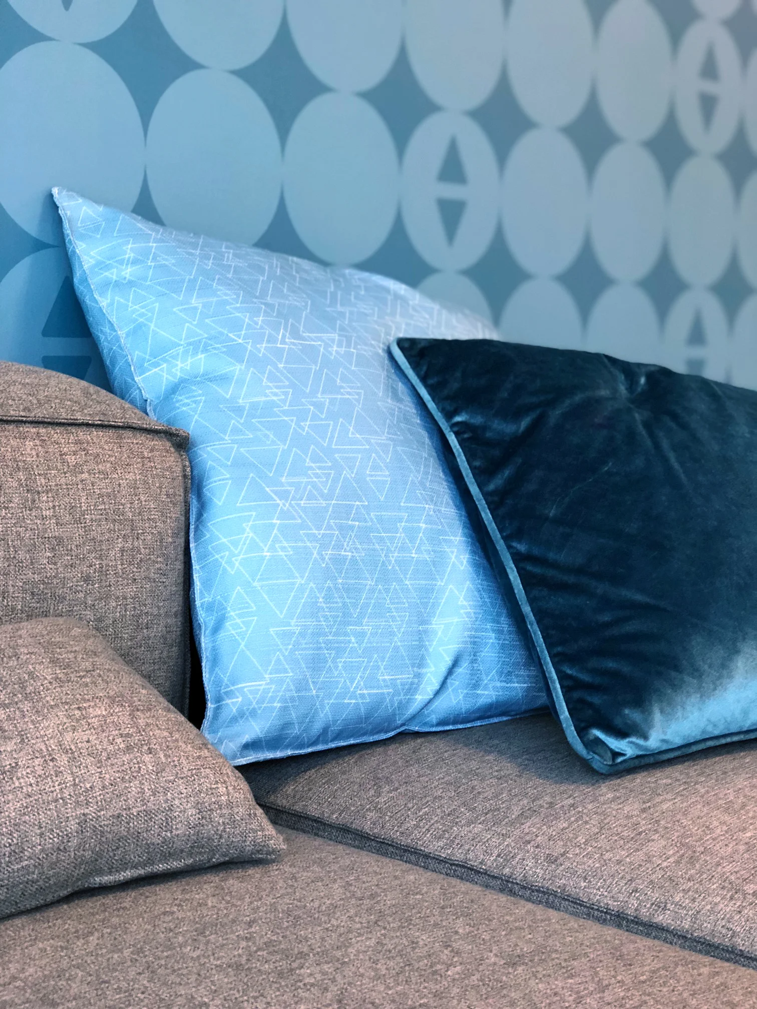 A set of patterns created for the Sleep Number brand, featuring playful designs with elements of the logo, used in different places, including the Sleep Number headquarters.